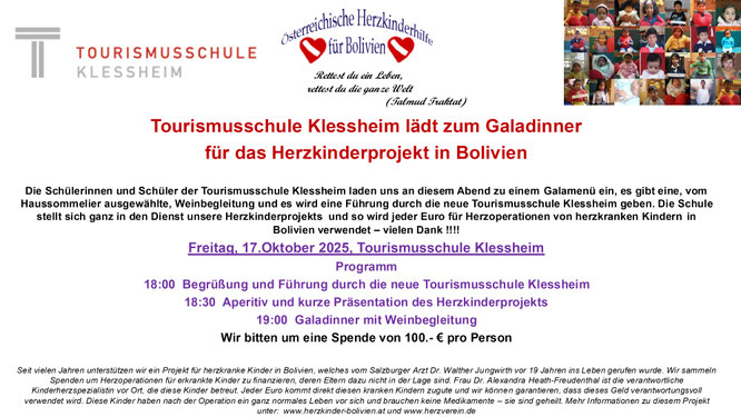 Zum ersten Mal stellt sich das Team der weltbekannten Tourismus Schule Klessheim in die Dienste für die Herzkinder in Bolivien.